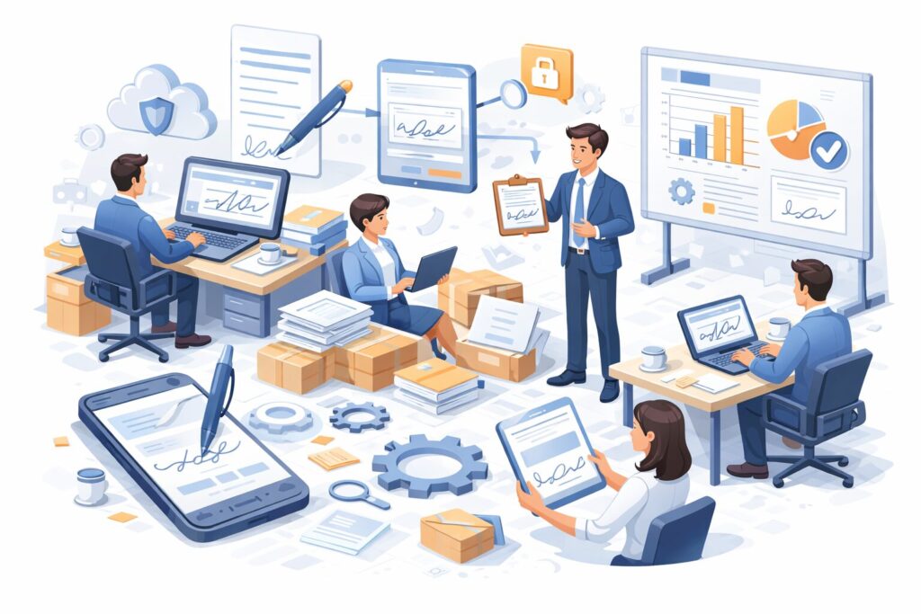 紙の契約って、印刷して、押印のために回覧して、封入して、郵送して、返送を待って、必要なら催促して、最後はファイリング…。これ、1件だけ見ると小さくても、積み重なると地味に効いてきます。