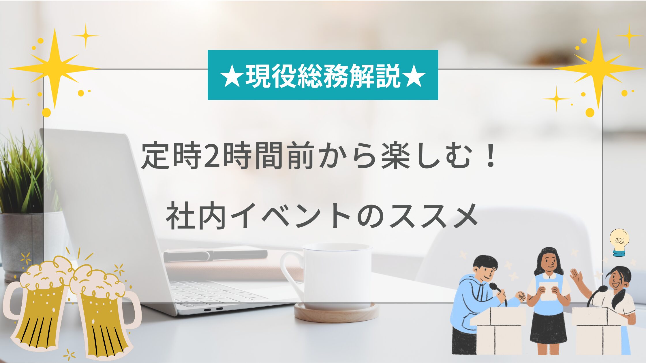 「お金をかけずに、楽しい社内イベントを作る方法はないか?」と悩んでいる総務担当者の方は、ぜひ参考にしてみてください♪